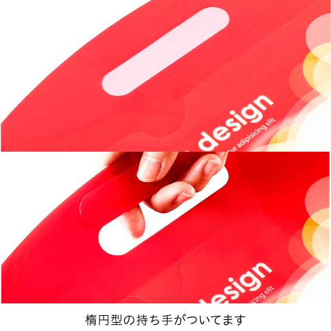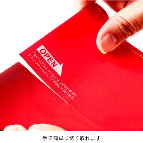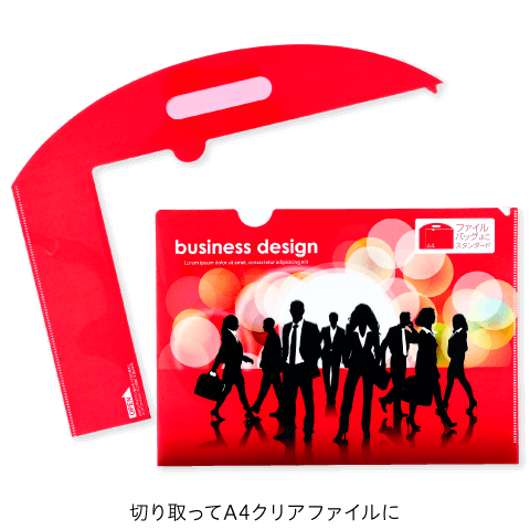 また、持ち帰った後、手提げ部分をミシン目で切り離すと、A4クリアファイルになるため、無駄なくPR効果を持続させることができます。