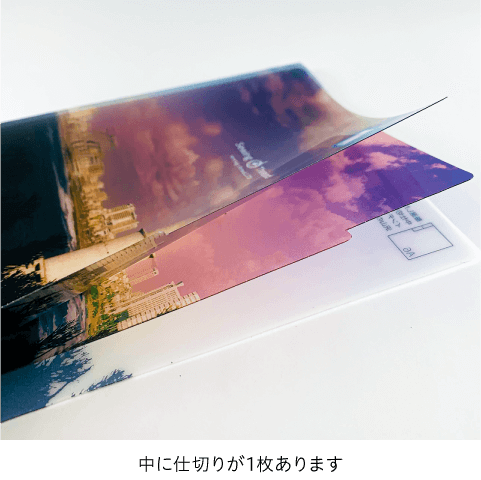 仕切り付きクリアファイル表面の光沢を抑えたつや消し効果により、その絵柄が持つ本来の質感をより美しく引き出します。自然光や蛍光灯の光の反射による絵柄の見えにくさを避けたいとお考えのお客様に是非おすすめ致します。