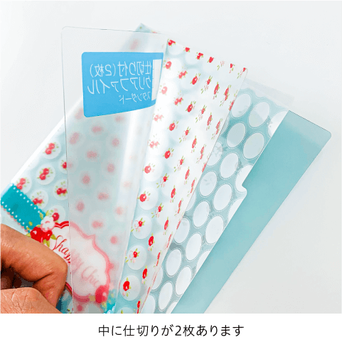 中仕切りが 2枚ついた A6サイズの仕切り付きクリアファイルです。